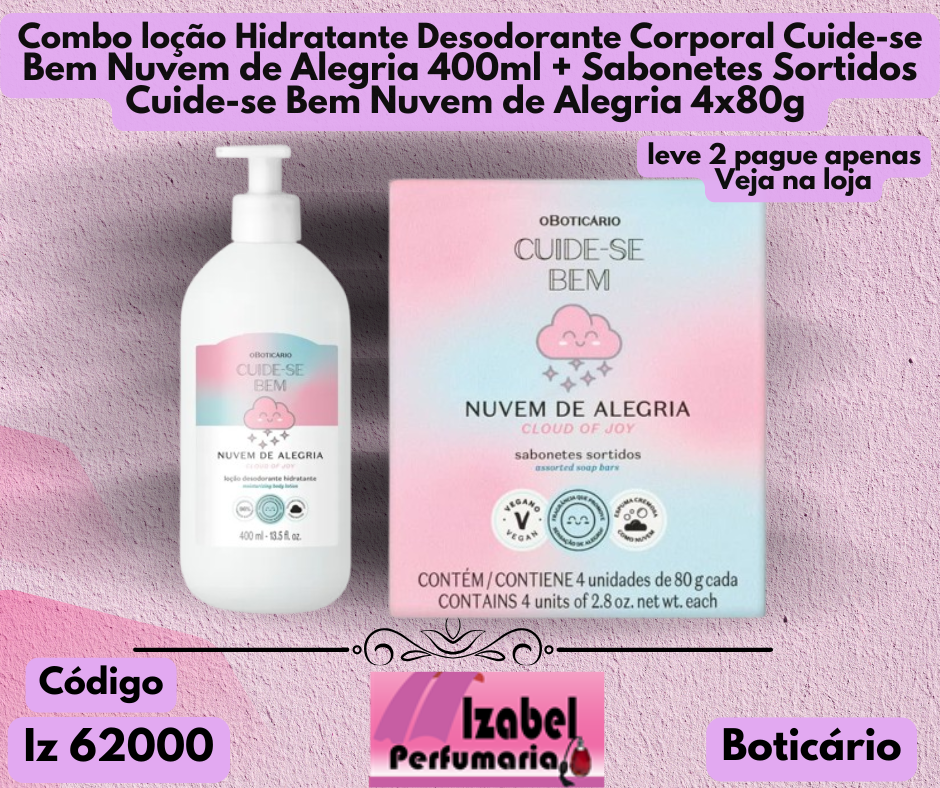 Combo loção Hidratante Desodorante Corporal Cuide-se Bem Nuvem de Alegria 400ml + Sabonetes Sortidos Cuide-se Bem Nuvem de Alegria 4x80g