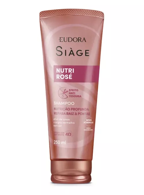 Com ação purificante, o Shampoo Siàge Nutri Rosé limpa profundamente da raiz às pontas, sem ressecar os fios. Sua fórmula com Elixir de Rosas e Argila Vermelha garante nutrição profunda até a 3ª camada do fio, reparação instantânea e duradoura, sem pesar, raiz saudável e comprimento livre de pontas duplas.
