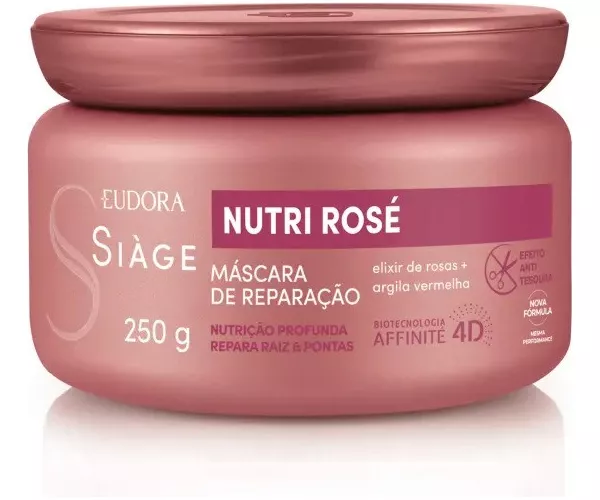 A Máscara Capilar Siàge Nutri Rosé entrega cabelos com toque macio, mais resistentes e com brilho natural. Sua fórmula hidrata profundamente e repara as áreas fragilizadas dos fios, além de devolver sua resistência natural, garantindo efeito anti tesoura.