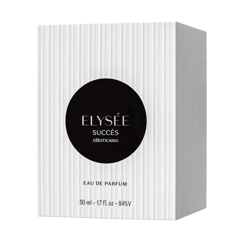 A embalagem de Elysée Succès remete à joia, característica da marca que completa a sofisticação do produto. O frasco também é inspirado no ingrediente principal da fragrância, a Rosa Negra, e traz uma pintura interna que revela toda a força interna e originalidade da mulher.