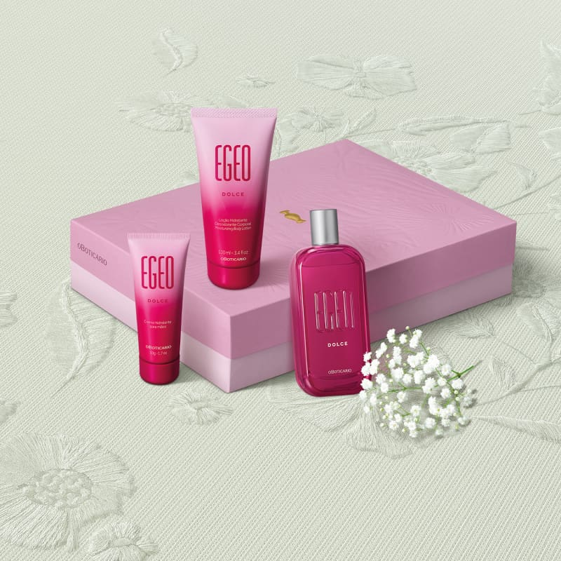 O Kit Presente Dia das Mães Egeo Dolce vem com fragrância Egeo Dolce, para usar em todas as ocasiões e dois itens de autocuidado que cabem na bolsa. Todos embalados em uma caixa especial. É aquele presente dia das mães criativo que transborda amor e doçura
