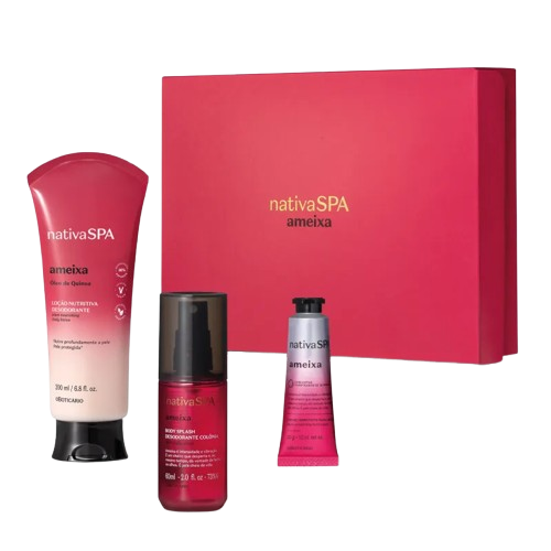 O Kit Presente Especial Nativa Spa Ameixa traz 3 itens da linha NATIVA SPA com a fragrância deliciosa da Ameixa. Embalados em uma caixa de presente exclusiva e elegante em homenagem à linha, une cuidado, beleza e praticidade.Transforme o ato de presentear em uma experiência encantadora com uma ideia de presente marcante: