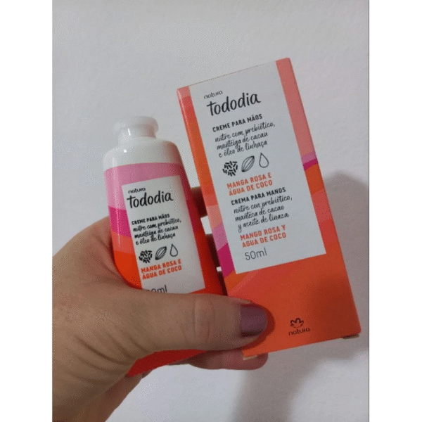 Natura Tododia Creme para mãos manga rosa e água de coco, lançamento, 50ml Excelente para hidratar as mãos em dias quentes e frios. Linha Tododia Marca Natura